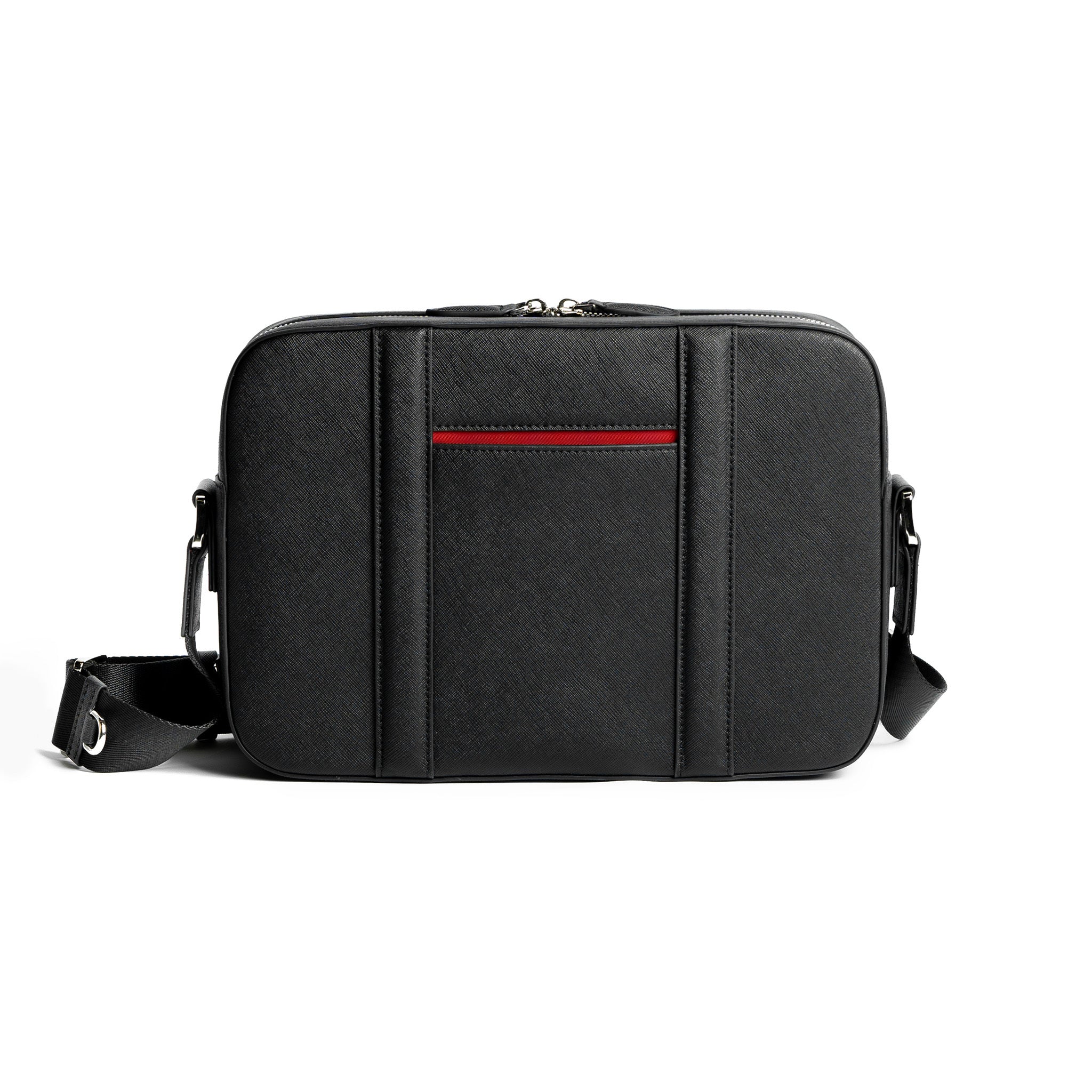 Beautifully crafted from genuine recycled Saffiano leather, this sleek messenger bag features a striking color lining that adds vibrancy while maintaining sophistication and effortless organization. ​​