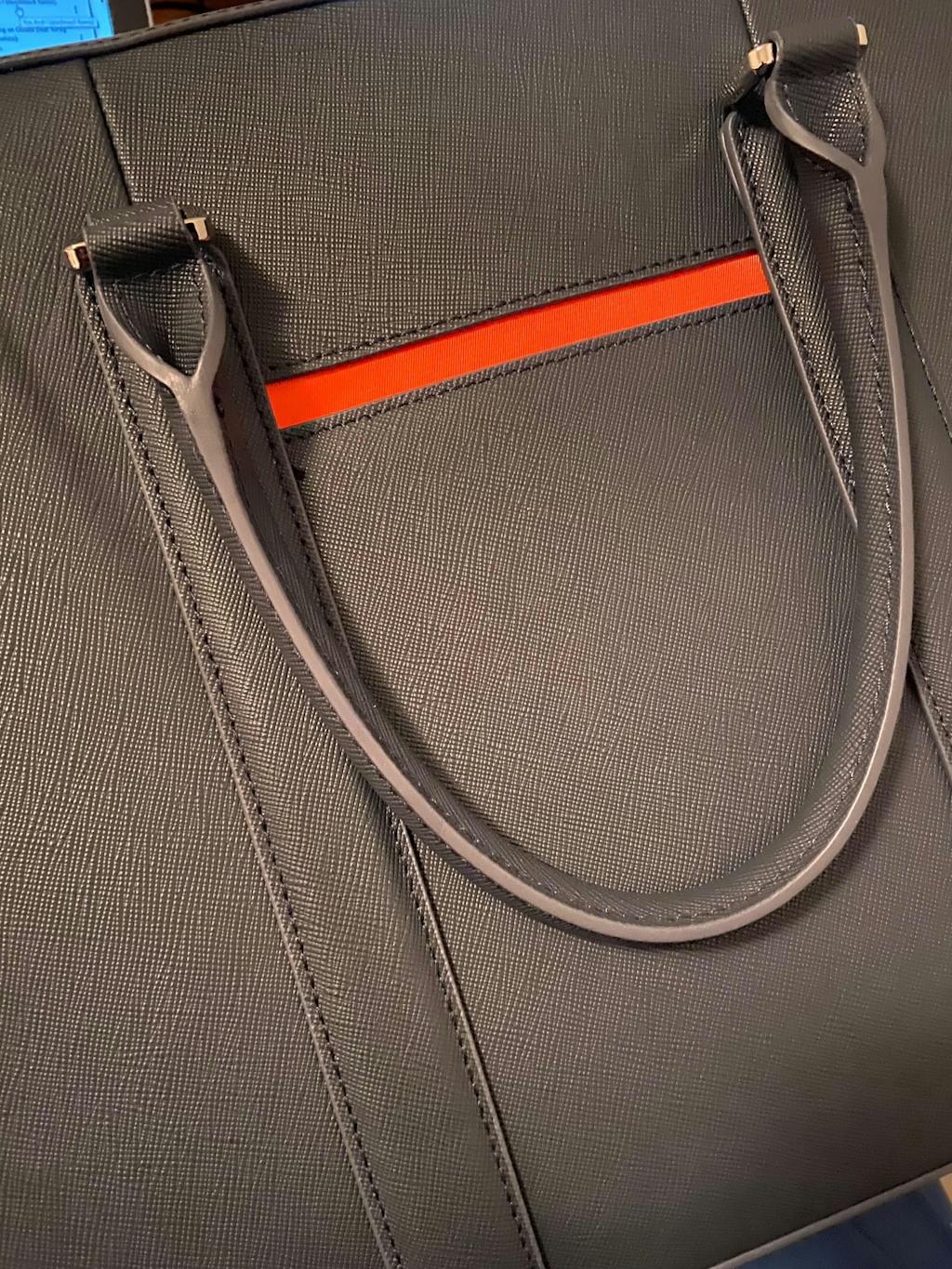 Yes. It’s crafted from genuine Saffiano leather with its signature cross-hatch texture, known for its refined look, durability, and resistance to everyday wear.