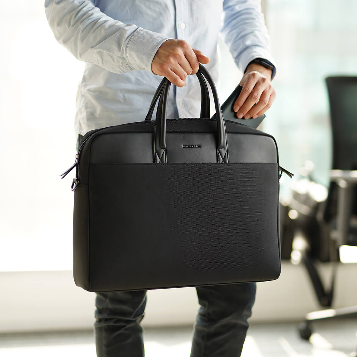Scopri l'ultima fusione di classe, comfort e funzionalità accuratamente progettata per il professionista moderno. Con le sue linee pulite e l'estetica sofisticata, la borsa leggera a movimento si integra perfettamente nel tuo abbigliamento professionale. ​