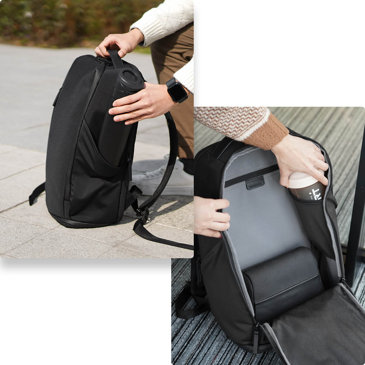 Easily fit your bottles and shakers with accessible and elastic water bottle slots, keeping you refreshed throughout the day.